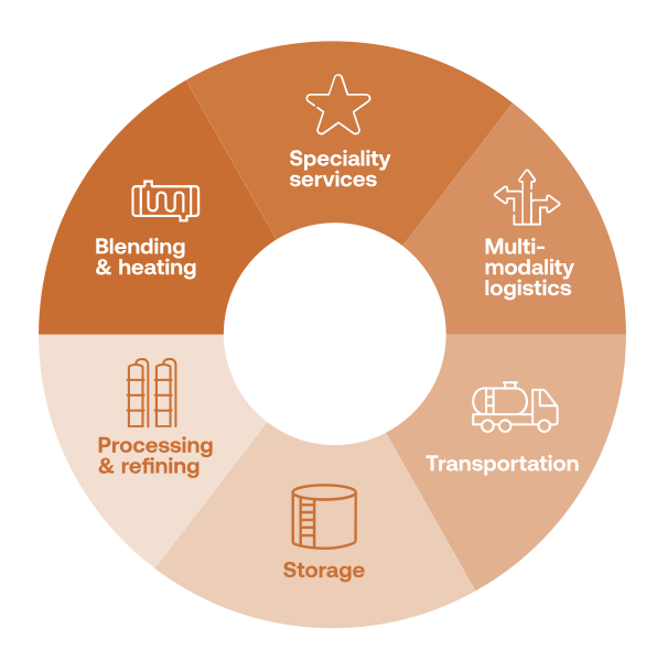 Sunray Terminal is a liquid bulk storage partner, specialising in end-to-end services for storage, processing and logistics. Collaborating closely with our customers and also third party terminals, we provide dependable services that help their businesses run smoothly, as well as creating the infrastructure that facilitates their growth. We make storage active by connecting supply and demand in new ways and thinking ahead towards the future.